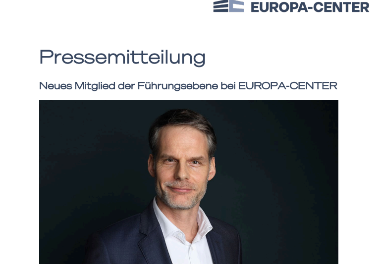 „Mit Friedrich Traub gewinnen wir einen ausgewiesenen Vermietungsexperten, der unsere Projekte mit hoher Marktkenntnis und strategischem Blick weiterentwickeln wird“, sagt Andreas Jantzen, Vorstand Immobilien der EUROPA-CENTER AG.